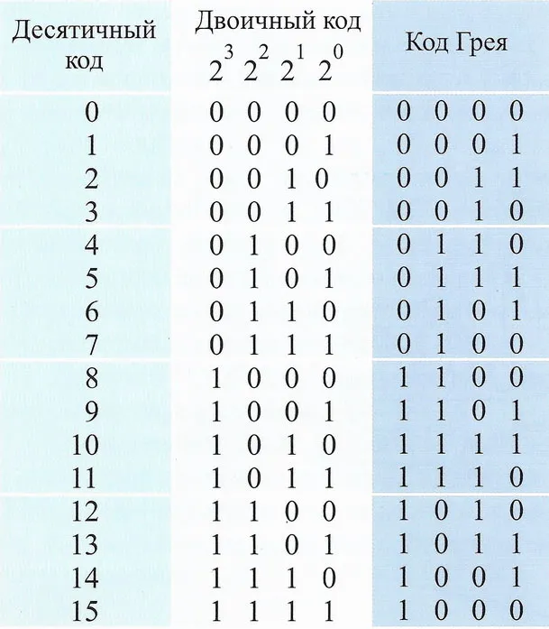 В зависимости от уровня сигналов, снимаемых с фотоприемников, им присваиваются значения 0 или 1, то есть получаемые кодовые комбинации являются бинарными кодами.