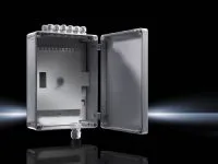 Малый распределитель ВОЛС из усиленного стекловолокном поликарбоната с монтажной панелью и кабельными вводами PG. Степень защиты IP 66.