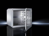 Настенный корпус со съемным кожухом для простой установки и с горизонтальной плоскостью 482,6 мм (19''). Визуальный контроль через обзорное окно.