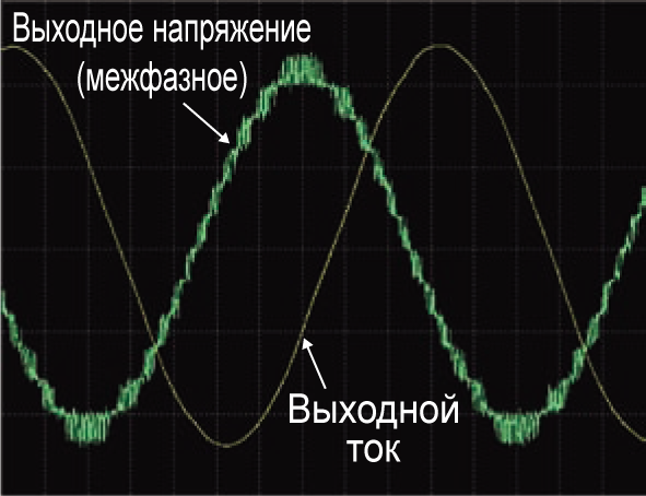 ![]() Кривые тока и напряжения на выходе для ПЧ 3 кВ |