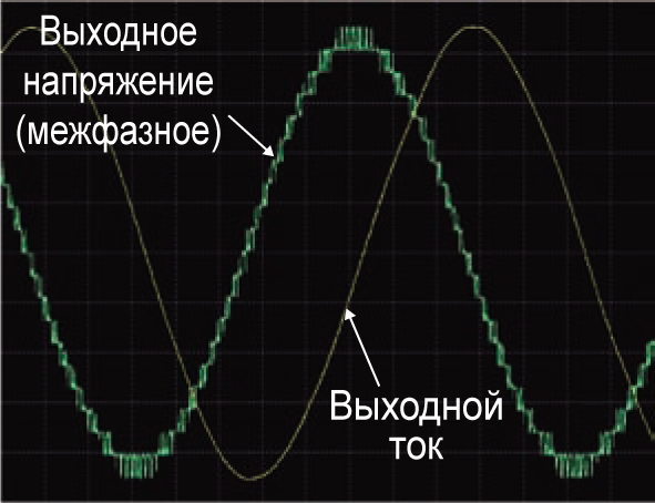 Кривая тока на выходе близка к идеальной Форма выходной кривой тока практически синусоидальная за счет использования многоуровневого ШИМ управления. Минимальное содержание гармоник в токе предотвращает пульсации момента на валу двигателя и снижает вероятность механического резонанса. |