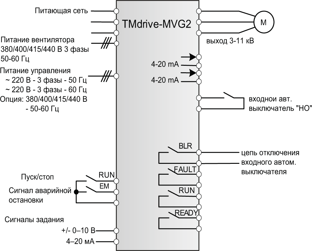 TMdrive-MVG2 - универсальный преобразователь частоты высокого напряжения, рассчитанный на промышленные мощности до 10 МВт и напряжение 3,3/3 кВ, 6,6/6 кВ, 10/11 кВ. Преобразователь отвечает всем японским стандартам качества, он может работать как с новыми двигателями, так и с уже существующими синхронными и асинхронными машинами. Преобразователь может удовлетворить любые требования Заказчика.